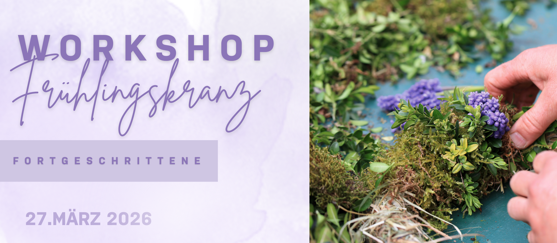 In diesem Workshop lernen Sie Schritt für Schritt die Grundlagen des Kranzbindens. Gemeinsam erstellen wir einen frühlingshaften Kranz aus frischen Zweigen und saisonalen Materialien.